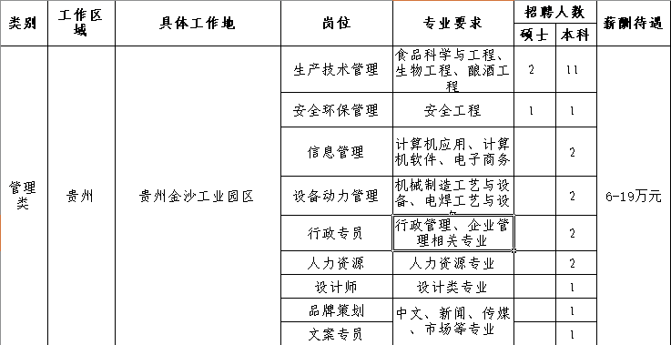 公司現(xiàn)有員工2000余人,固定資產(chǎn)達(dá)35億元,年產(chǎn)基酒達(dá)1.9萬噸,老酒儲備達(dá)4萬噸,是貴州第二大醬香型白酒生產(chǎn)企業(yè)。曾先后榮獲歷屆貴州八大名酒、中國馳名商標(biāo)、布魯塞爾烈性酒大金獎等各種殊榮,獲得純糧固態(tài)發(fā)酵白酒標(biāo)志認(rèn)定和國家地理標(biāo)志保護(hù)產(chǎn)品認(rèn)定。2019年品牌價值達(dá)至268.06億元,銷售市場從貴州擴(kuò)展到北京、山東、河南、廣東、廣西、江蘇、安徽等全國27個省市。因公司發(fā)展需要,現(xiàn)面各高校及社會招聘一批優(yōu)秀人才?,F(xiàn)將有關(guān)事項公告如下: