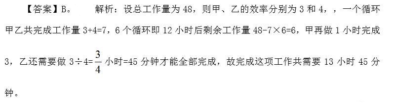 例3:?jiǎn)为?dú)完成某項(xiàng)工作,甲需要16小時(shí),乙需要12小時(shí),如果按照甲、乙、甲、乙、……的順序輪流工作,每次1小時(shí),那么完成這項(xiàng)工作需要多長(zhǎng)時(shí)間?