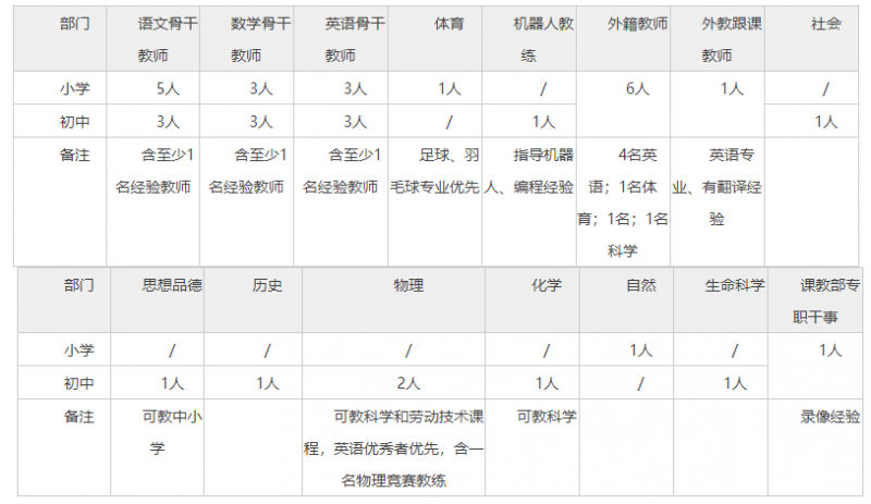 2. 具有雙語教學(xué)能力的學(xué)科教師優(yōu)先; 能勝任日語、法語、德語語言教學(xué)的教師優(yōu)先。