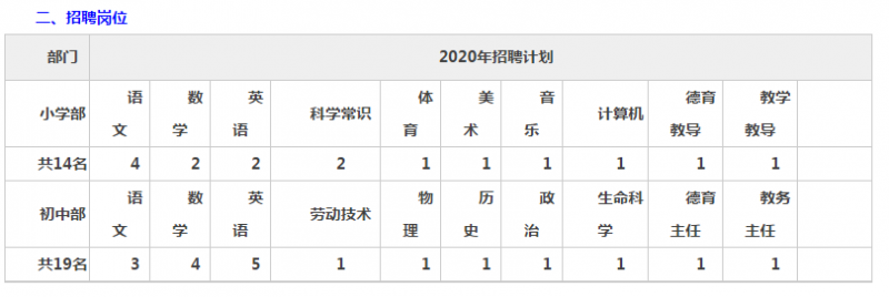 請將個(gè)人簡歷、畢業(yè)證(應(yīng)屆畢業(yè)生提供學(xué)校證明)、教師資格證、普通話證書、職稱證書(在職教師提供)、獲獎(jiǎng)證書、近期免冠照片等的電子文檔以“學(xué)科+姓名”命名,發(fā)送至郵箱也可將資料原件及復(fù)印件直接寄往學(xué)校。簡歷投遞截止日期:2020年6月10日。